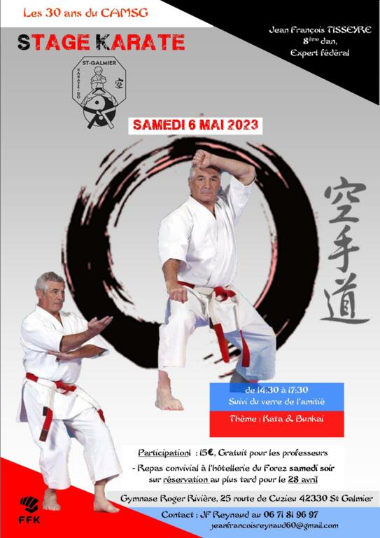 Le stage initialement animé par JF Tisseyre sera finalement dirigé par Alain Michaud suite à un problème de santé de JF, nous lui souhaitons un prompt rétablissement et impatient de le revoir.