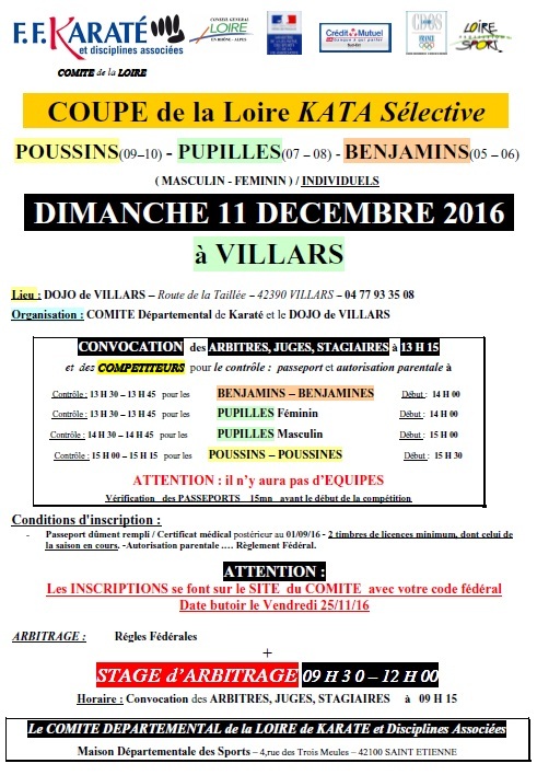 Lieu : DOJO de VILLARS -- Route de la Taillée --- 42390 VILLARS --- 04 77 93 35 08
