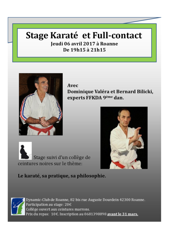 Stage animé par Dominique Valera et Bernard Bilicki (experts FFKDA 9 dan)