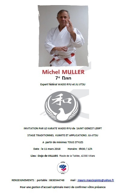 Stage animé par Michel Muller, 7 Dan, expert fédéral Wado Ryu et Ju Jitsu